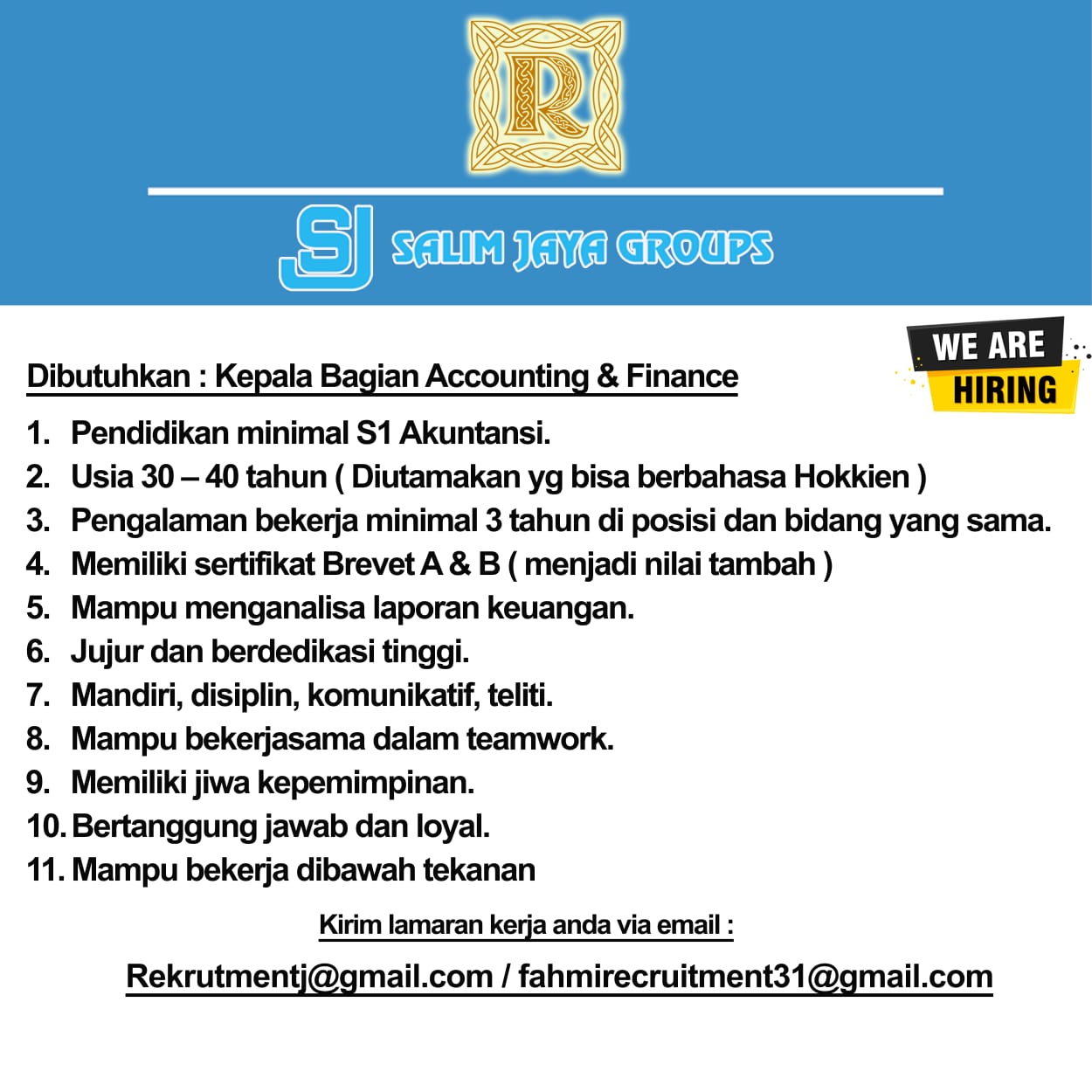 Info Loker Medan Terbaru KEPALA BAGIAN ACCOUNTING Salim Jaya Groups