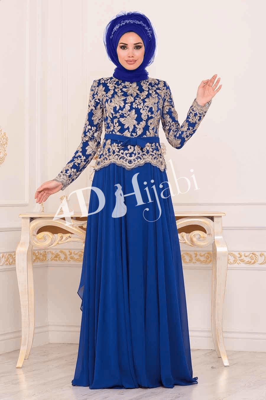 Royal Blue Turkish Evening Gown 4D Hijabi